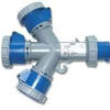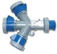 Industrial and multiphase plugs and sockets provide a connection to the electrical mains rated at higher voltages and currents than household plugs and sockets. They are generally used in poly phase systems, with high currents, or when protection from environmental hazards is required. Industrial outlets may have weatherproof covers, waterproofing sleeves, or may be interlocked with a switch to prevent accidental disconnection of an energized plug.